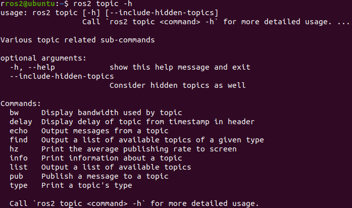 ros2 topic -h